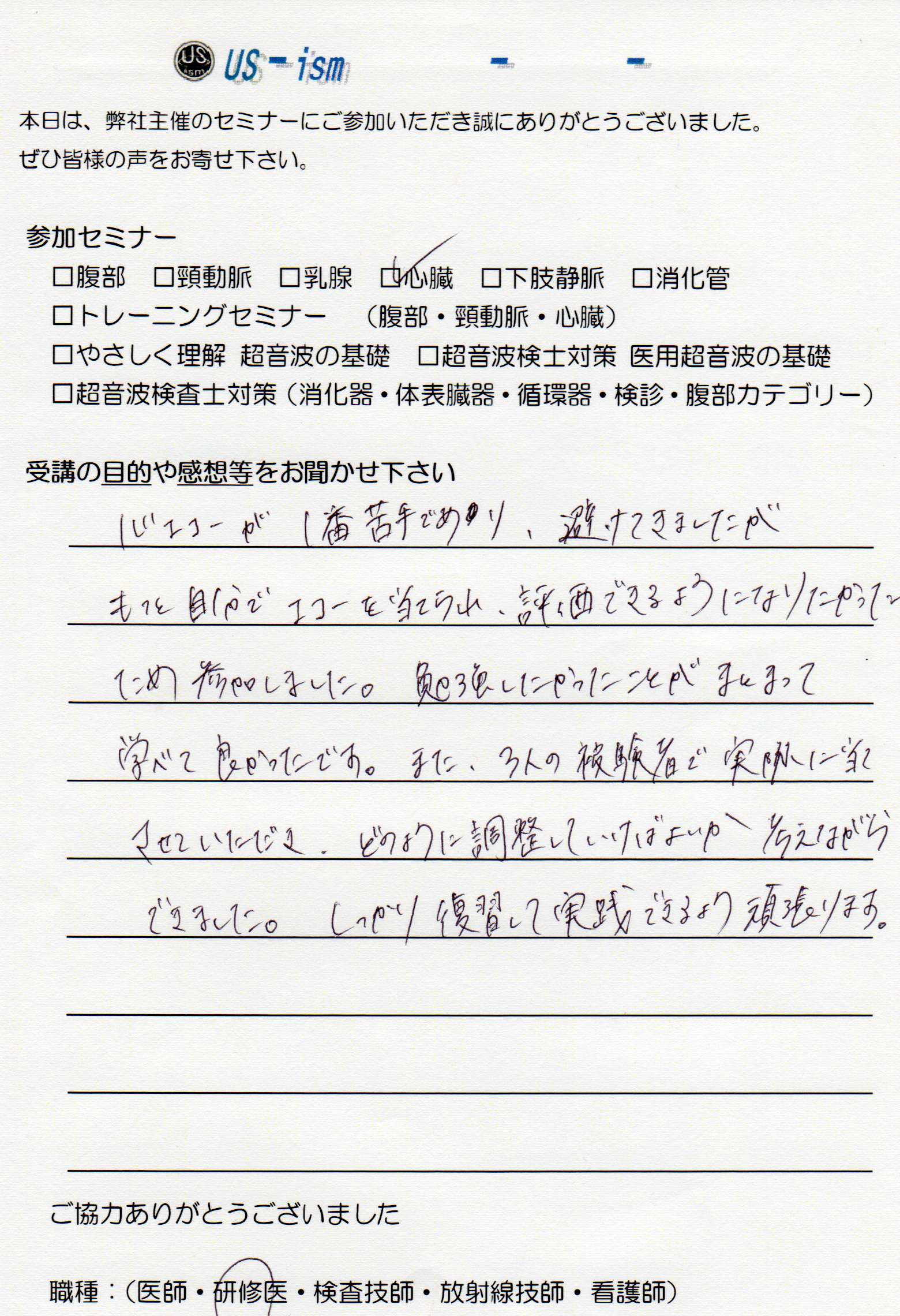 参加者の声 「心エコートレーニングセミナー」